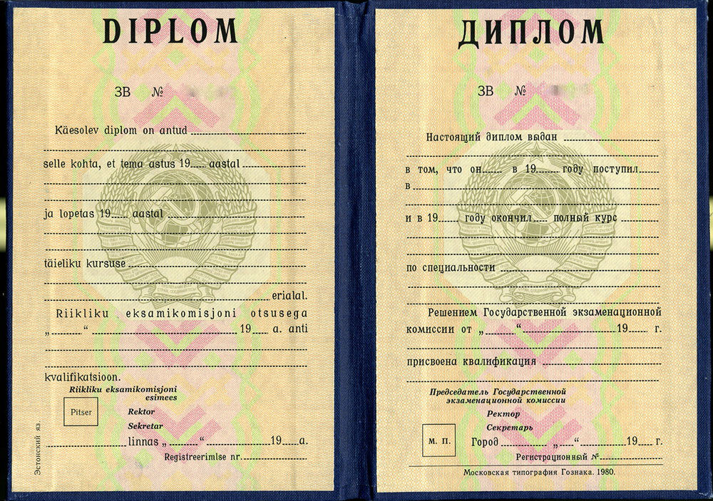 Помимо диплома ВУЗа и ПТУ Эстонии СССР, можно сделать заказ на приобретение диплом о высшем образовании, абсолютно любого года.